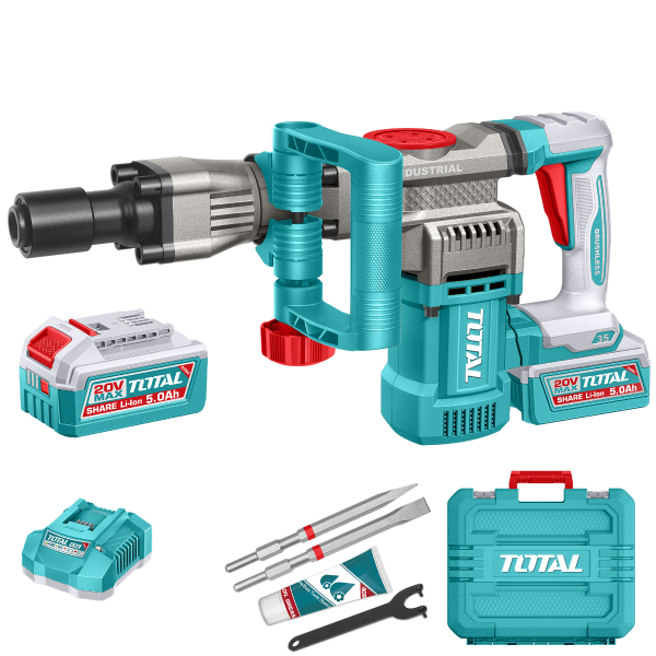 Total Tools 20V Brushless Cordless Demolition Breaker 16J SDS HEX with 2×5.0Ah Batteries & Charger – TDBLI203582