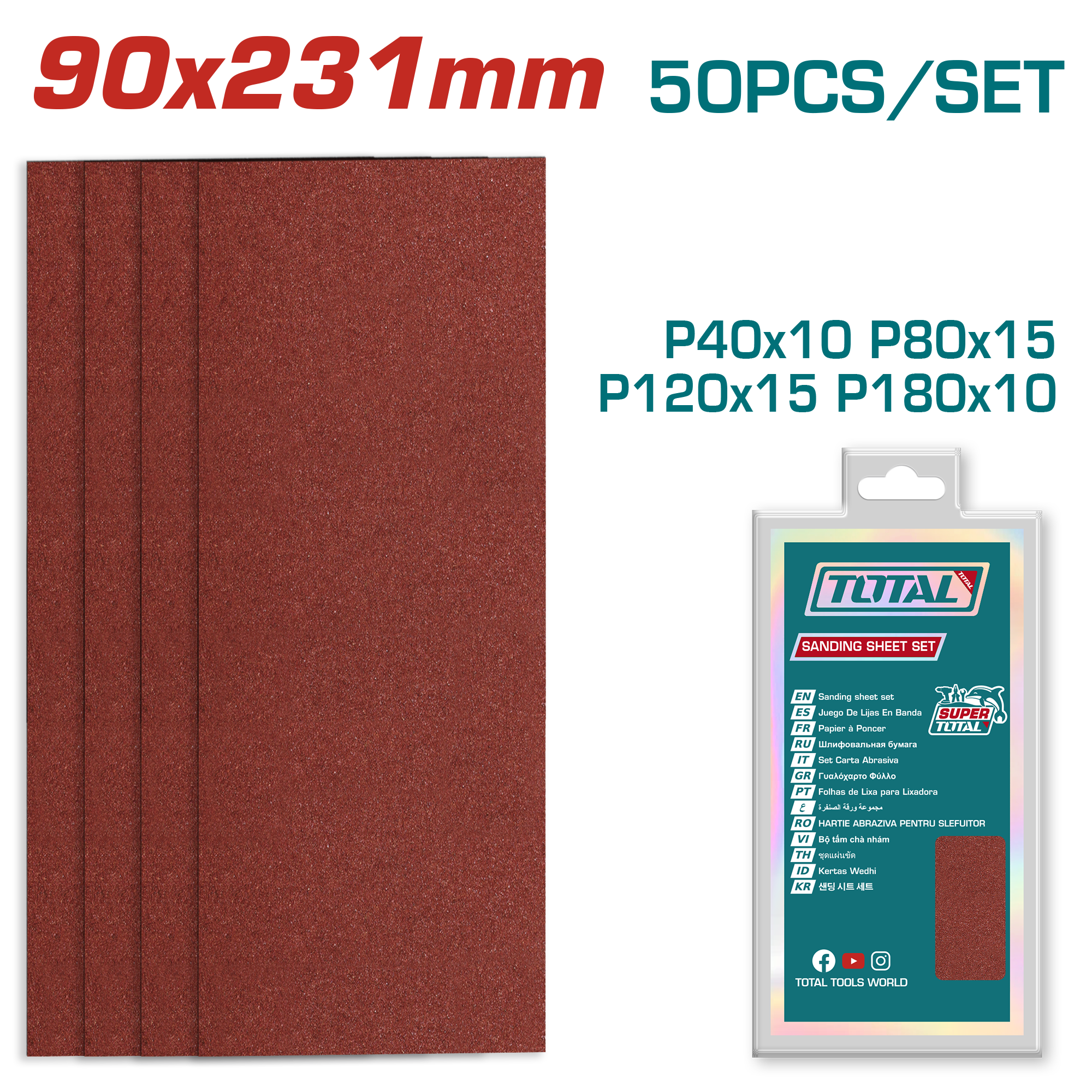 TOTAL 50-Piece Sanding Sheet Set 90×231mm – TAC7492412